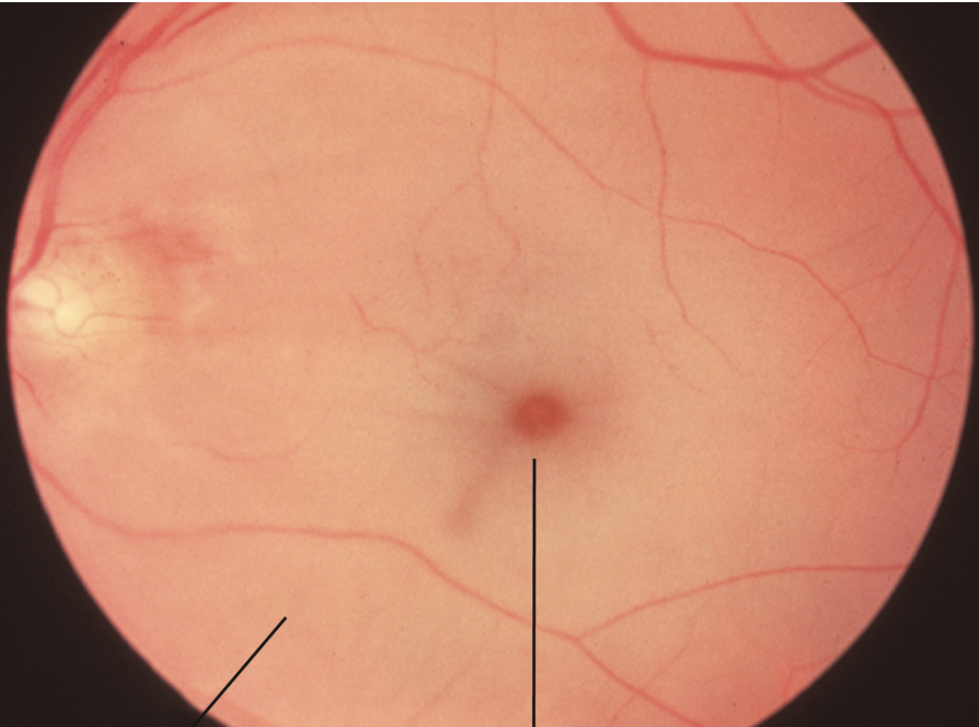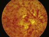 - arterial narrowing w/ retinal hemorrhages and/or exudate
