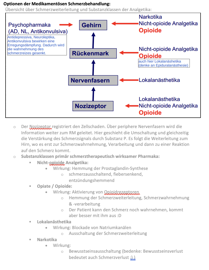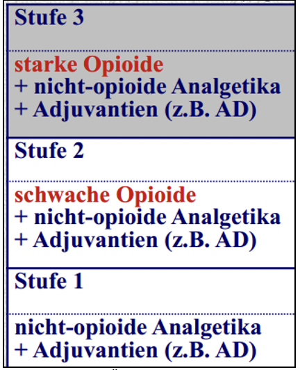 o Man fängt mit den “schwachen Analgetika” an und steigert dann individuell. Habe ich allerdings einen Patienten, mit sehr starken Schmerzen, kann auch Stufe 1 und 2 übersprungen werden (z.B. bei Fraktur).