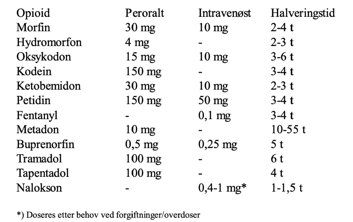 Hvilke opioider bruker man?
