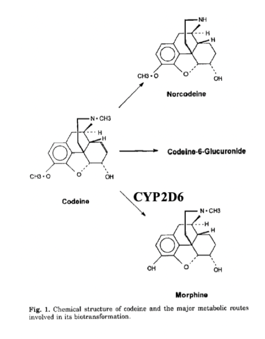 Ca. 10% av administrert kodein metaboliseres til morfin via CYP2D6