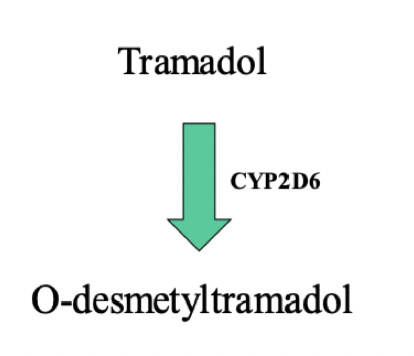 Metabolitten O-desmetyltramadol har 200x høyere affinitet for 𝜇(MOR/OP3)-reseptoren og lengre halveringtid