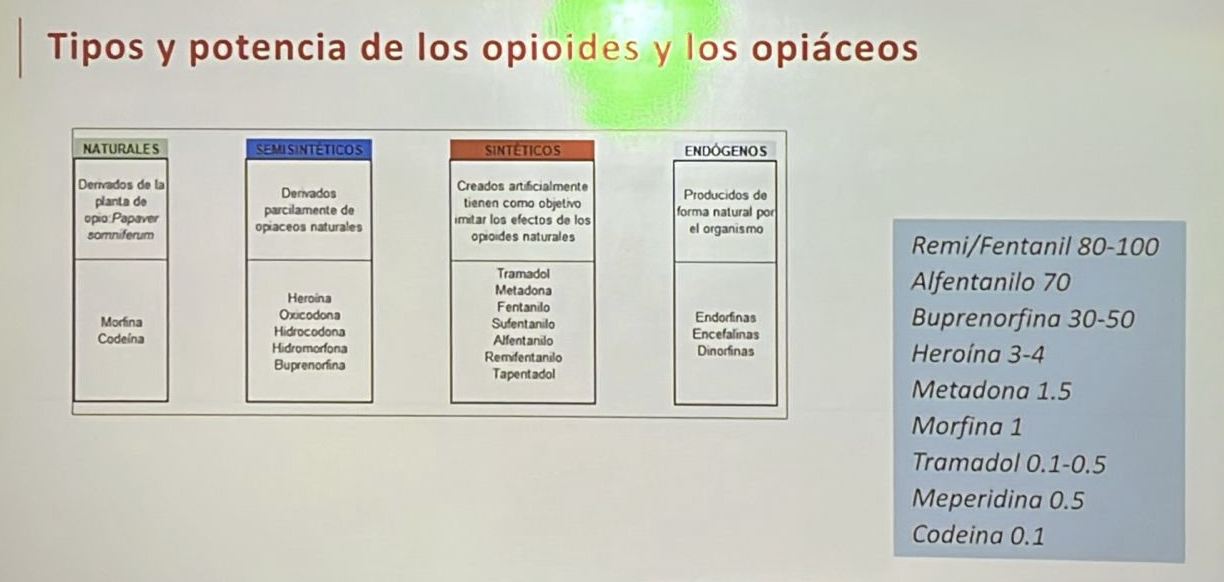 Tipos y potencia de opioides y opicáceos