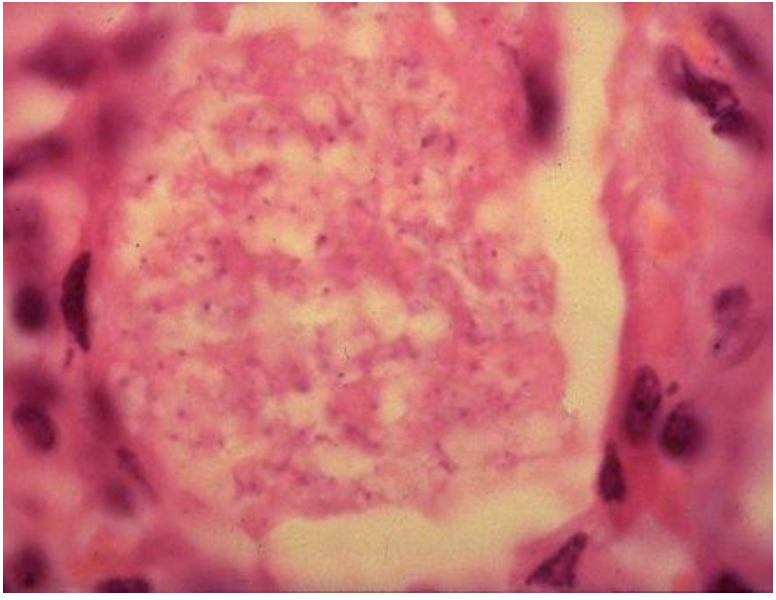 organism adheres to type 1 pneumocytes lining alveoli which then makes it harder for oxygen to get into.