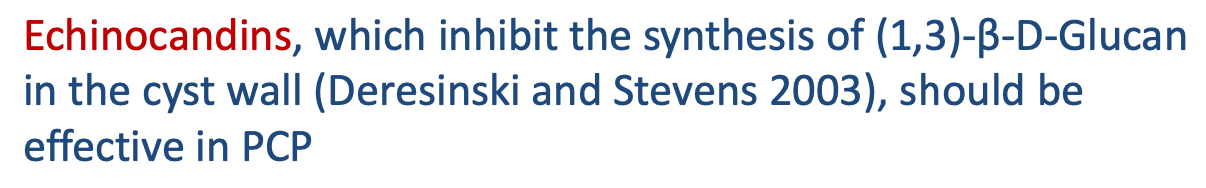 Pentamidine, Dapsone-trimethoprim, Clindamycin-primaquine, Atovaquone. Also Echinocandins.
