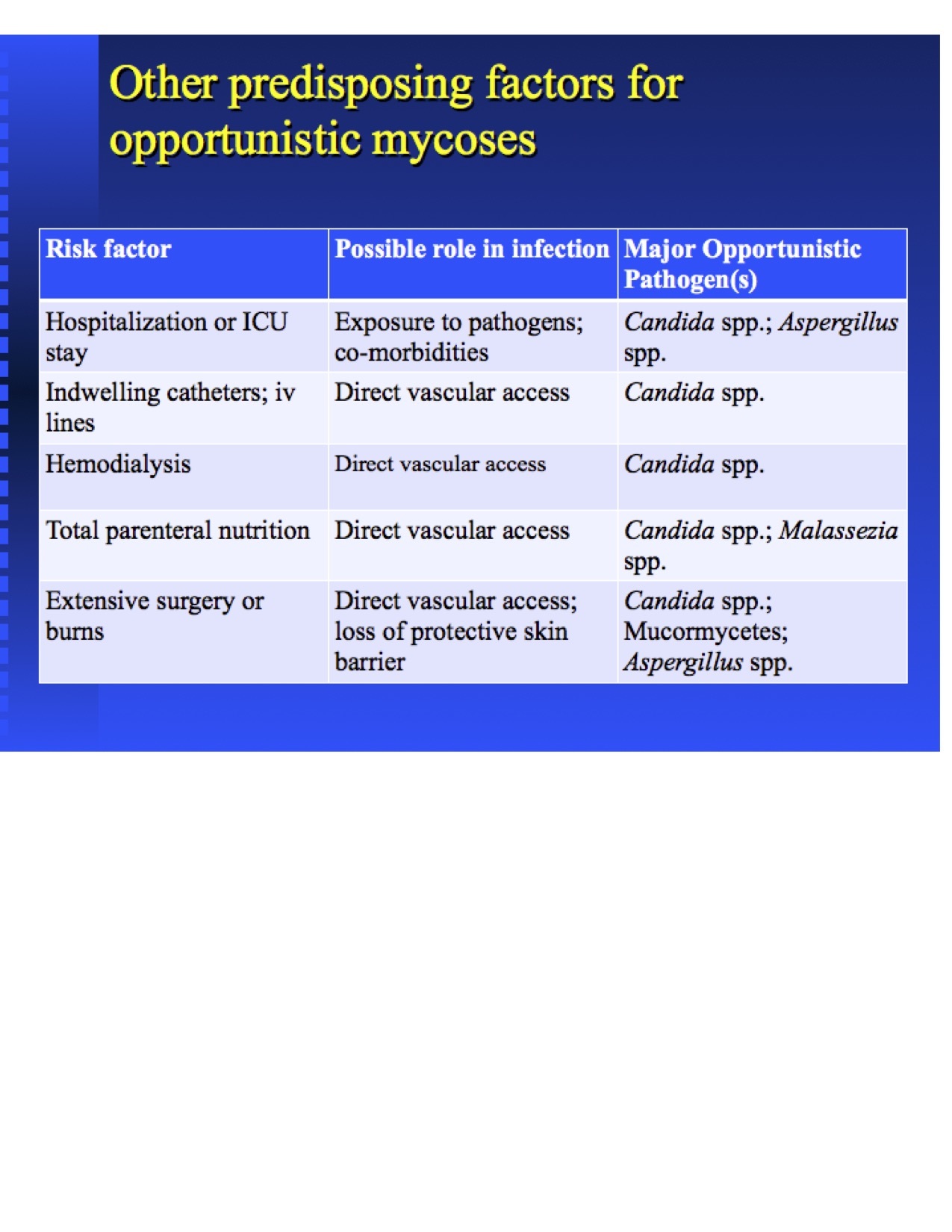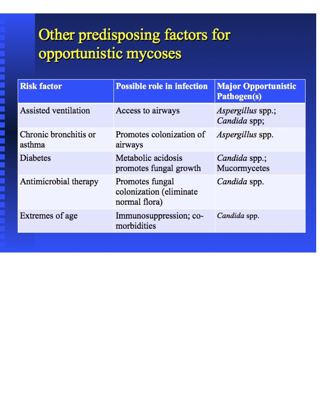 Other predisposing factors for opportunistic mycoses? (5,6)