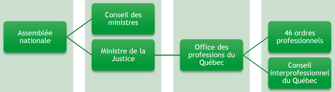 Palier responsable d’approuver les règlements et d’appliquer le Code des professions.
