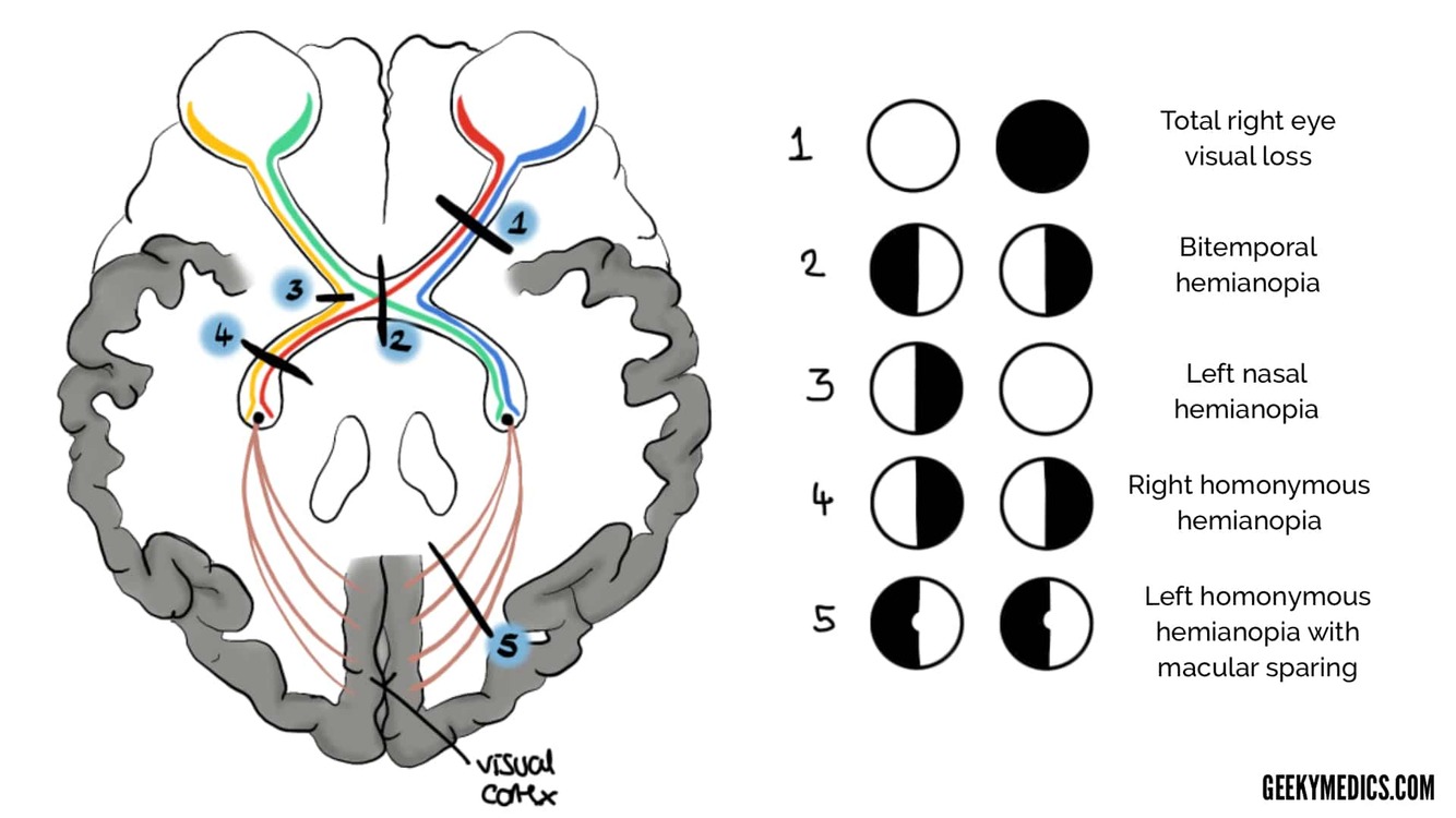 From optic chiasm it goes to the lateral geniculate nucleus via optic tract