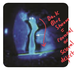 Main features = extremely painful, deep red injected eye, patient has systemic connective tissue disease, reduced visual acuity, blurred vision