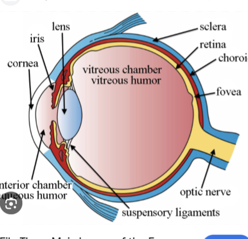 information then passed on from the retina by the optic nerve which travels to the optic chiasm