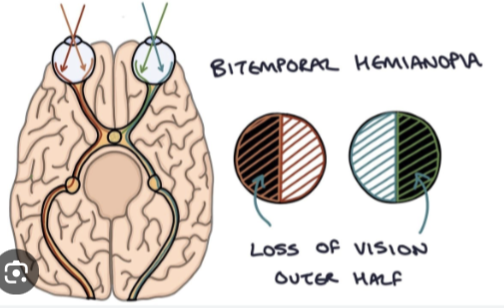 what type of visual deficit is associated with damage to the optic chiasm eg from pituitary tumour?