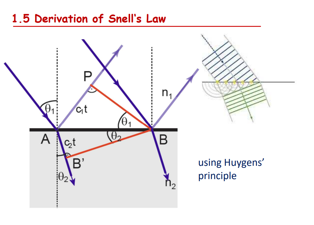 Can derive Snell’s Law using Huygens’ Principle.