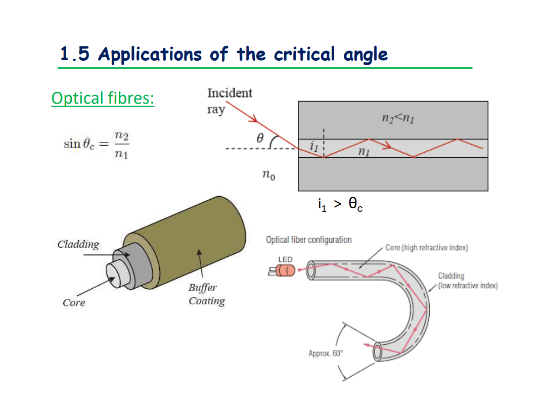 Don’t forget the incident ray refracts UPON entering the optical fibre (look closely).