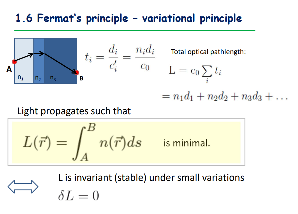 State Fermat’s Principle/Principle of least time