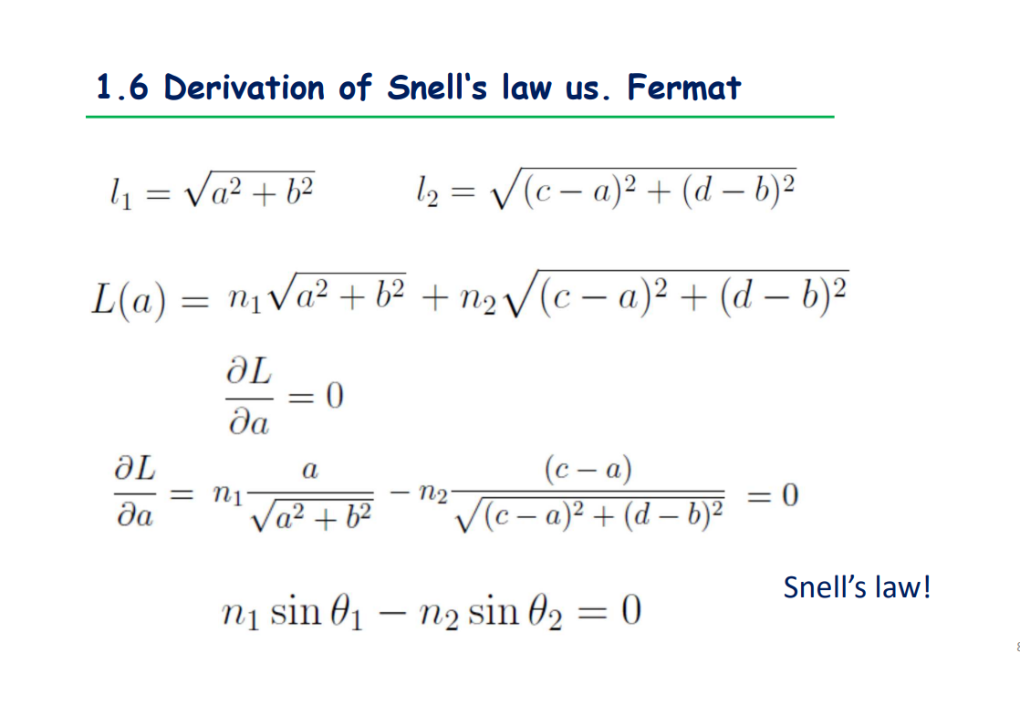 Derivation of Snell’s Law using Fermat’s therorem