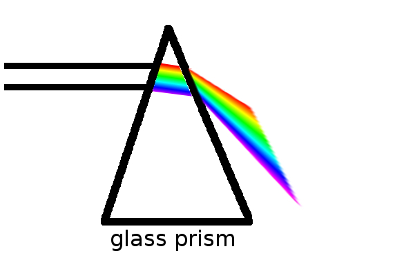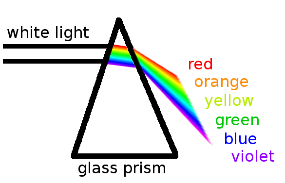 The separated colors are, in order, red, orange, yellow, green, blue, indigo, violet.