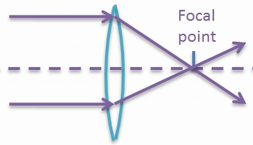 An optic’s focal point is the location where all rays parallel to the principal axis of the optic will cross after reflecting from/refracting through the optic.