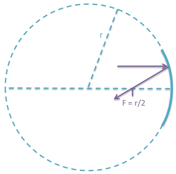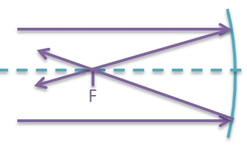 A mirror is converging if any inbound light ray which is parallel to the mirror’s principal axis crosses the axis after reflecting off the mirror.