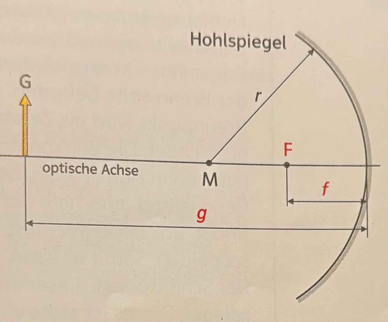 r von M (Mittelpunkt von Spiegel u Ggstand) zu dem Spiegel
