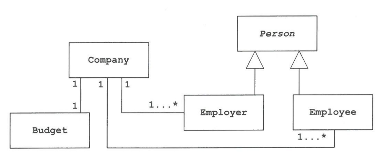 Example: A Company object may have an Employer and Employee objects that each inherit from a Person object. The Company also has a Budget object since the company adheres to a budget.
