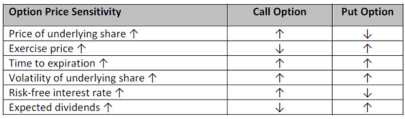What’s the impact of following factors on Option Price?