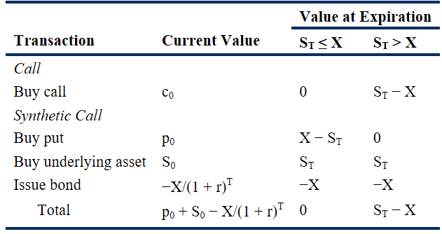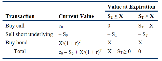 A combination of a European call and a risk-free bond that matures on the option expiration day and has a face value equal to the exercise price of the call