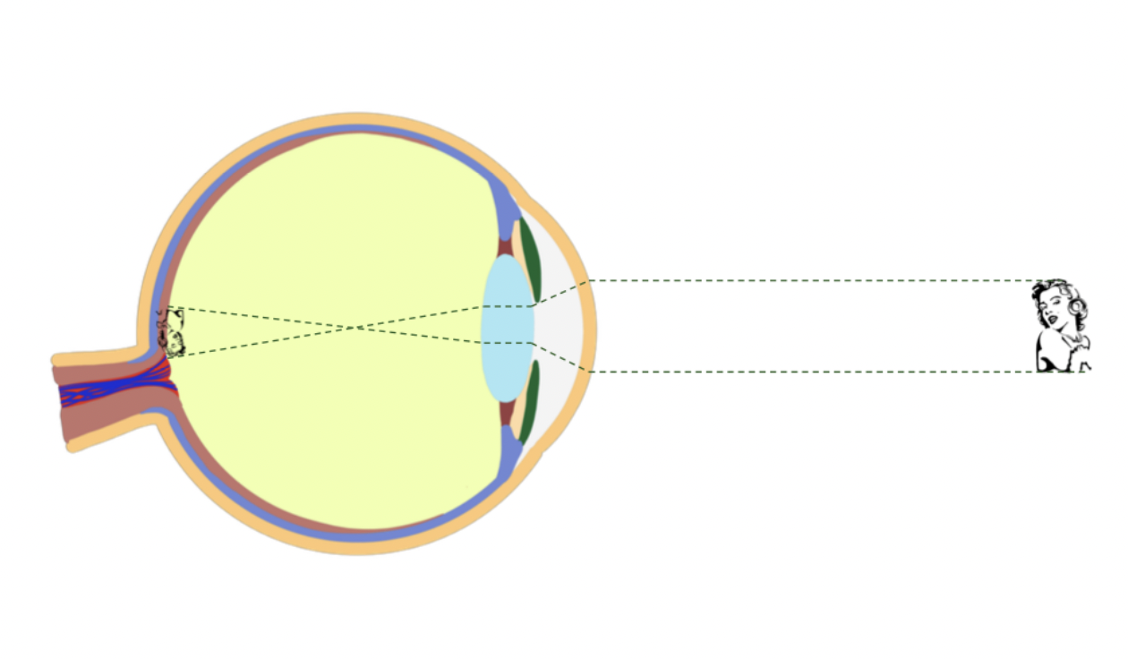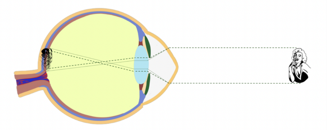Un œil hypermétrope est un œil qui est généralement plus court que la normale et ainsi la mise au point se fait postérieure à la surface rétinienne.