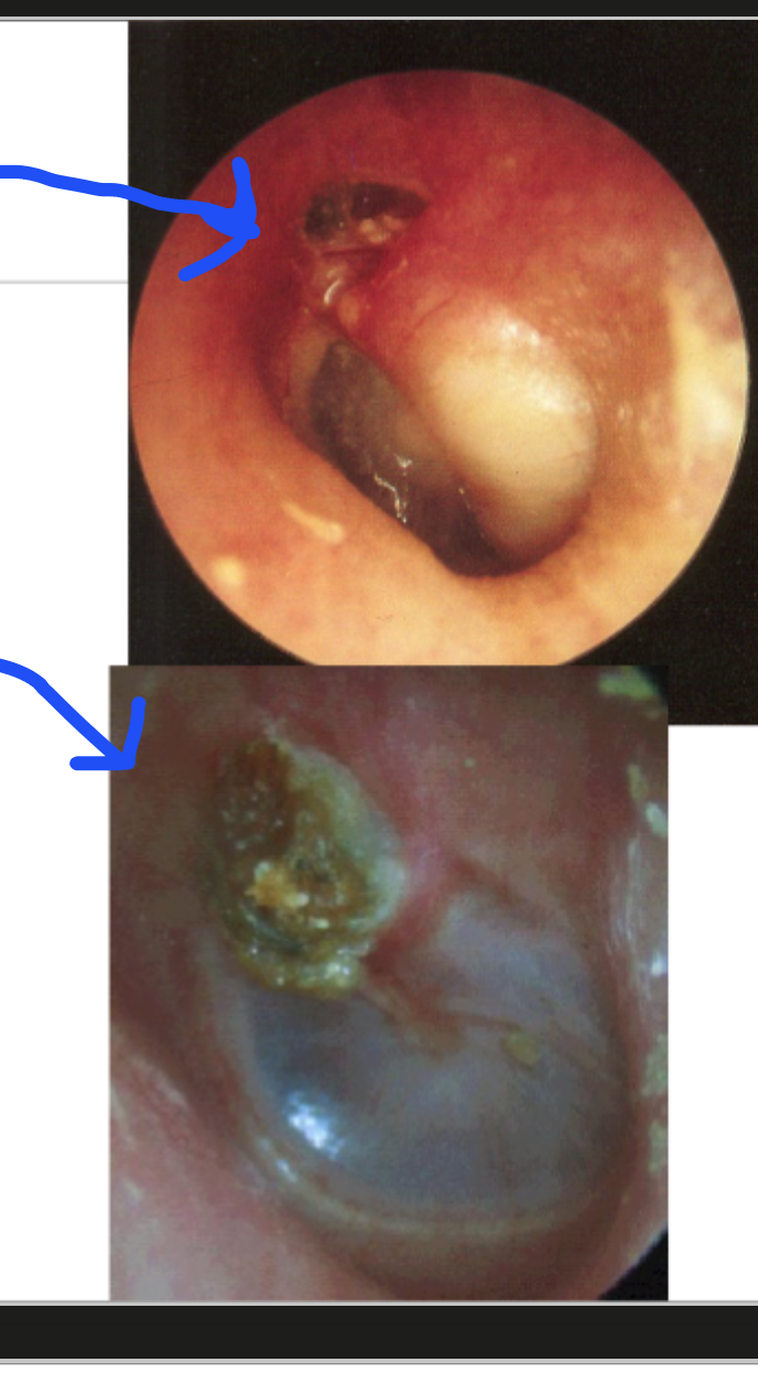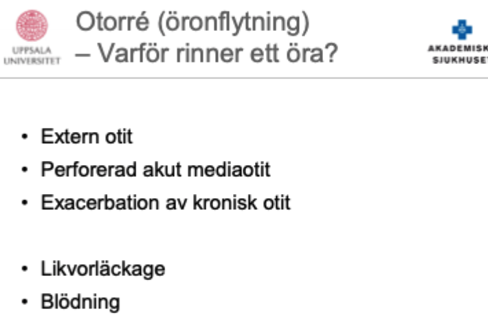 Nämn diffidagnoser till otorré. Totalt 3 öronsjukdomar, 2 andra allvarligare