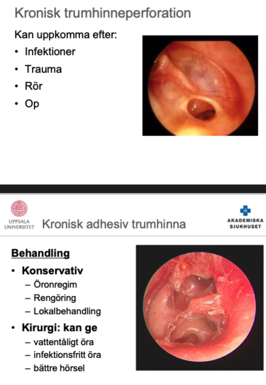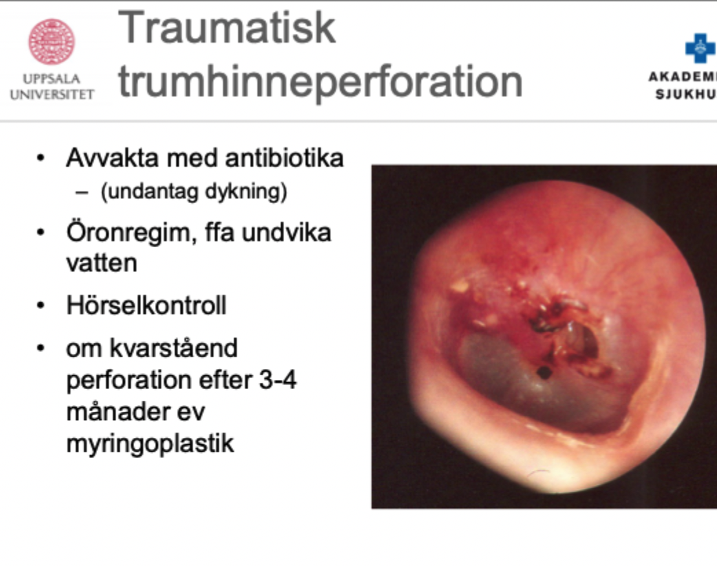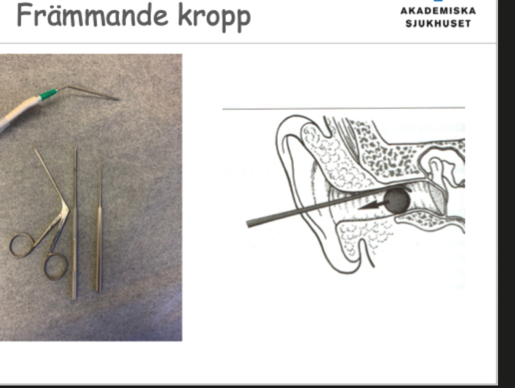 - tamponad och alsolsprit om svullet –> sen örondroppar