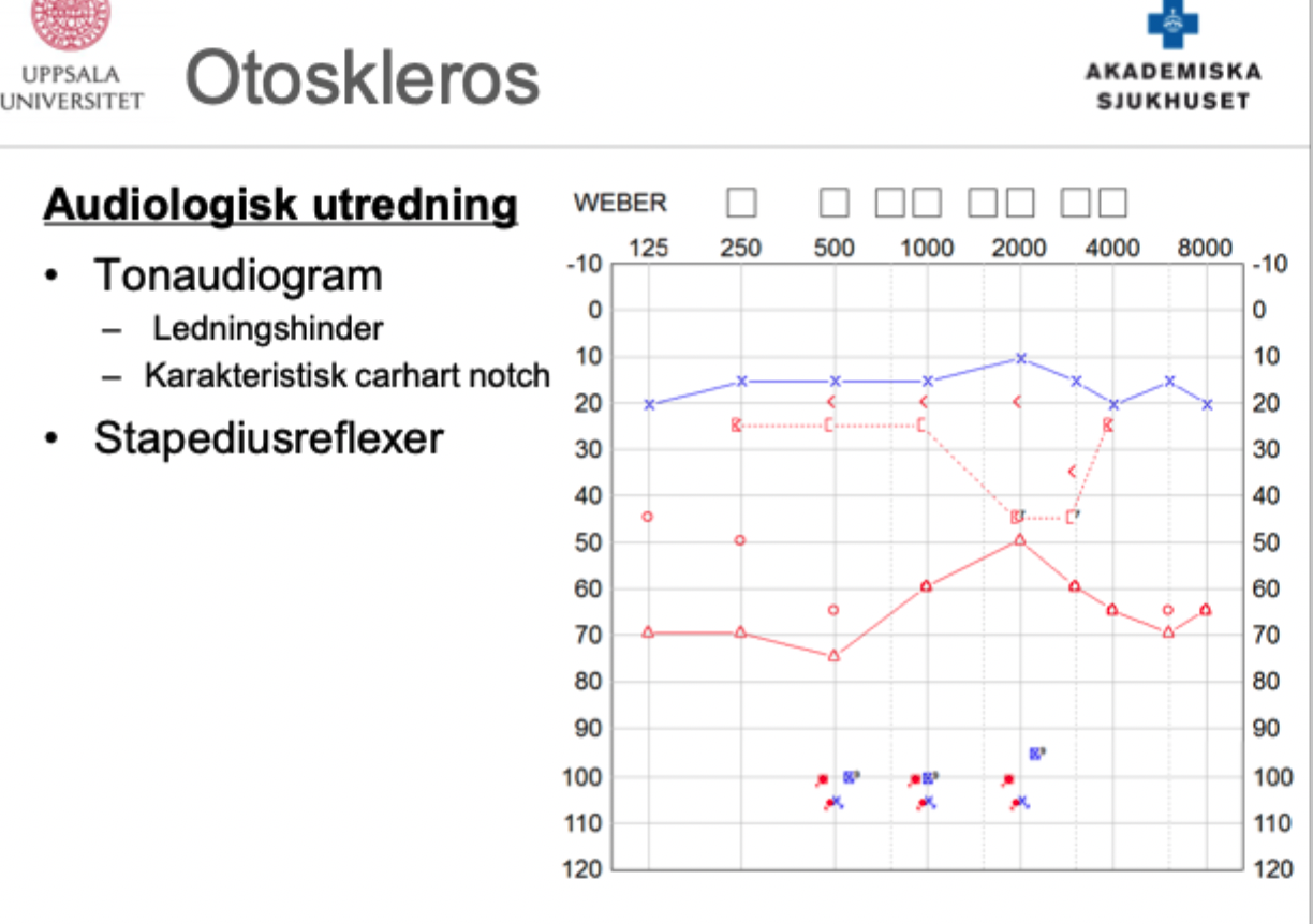 Vad är klassiskt tecken på audiogram för otoskleros?