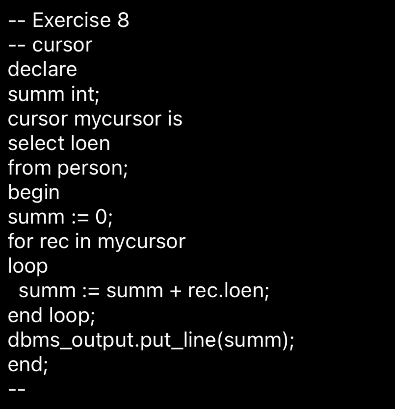 Der bliver lavet en cursor som summerer alles løn og printer den