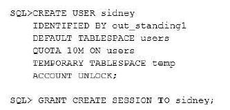 D. The user Sidney can connect to the database instance but requires relevant privileges to create objects in the users tablespace.