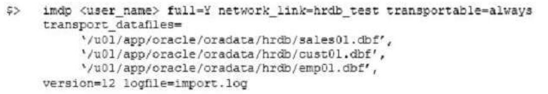 Examine the following impdp command to import a database over the network from a pre-12c Oracle database (source):