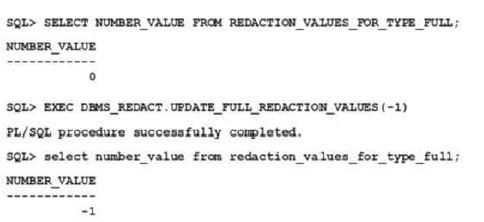After implementing full Oracle Data Redaction, you change the default value for the NUMBER data type as follows: