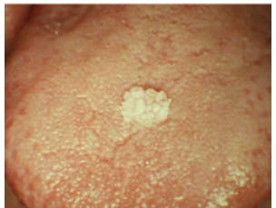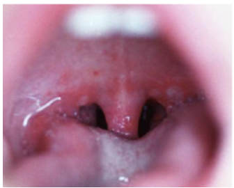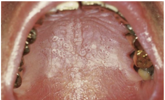 Red Dots= inflammed minor salivary duct openings on hard palate