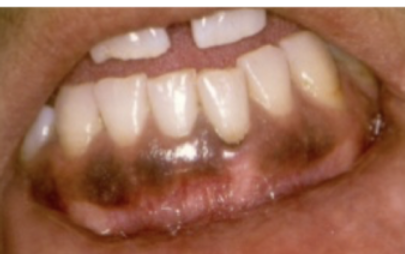 * hyperpigmentation in mucous membrane (Basically a freckle)