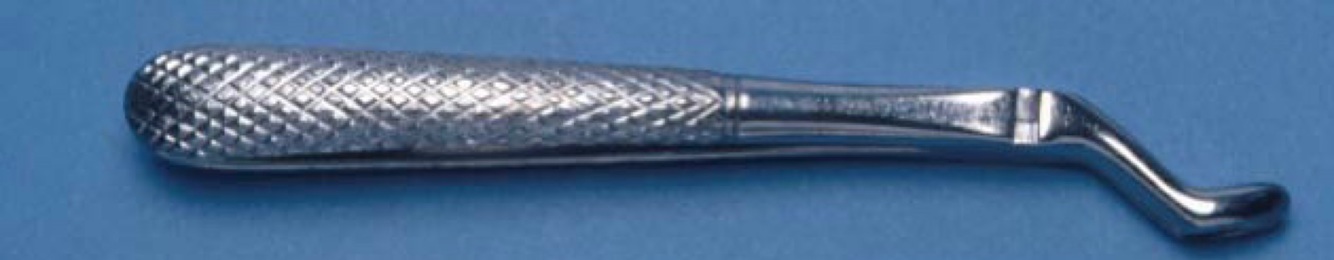 Upper ‘bayonet’ root forceps, used for roots of teeth and especially 3rd molar roots