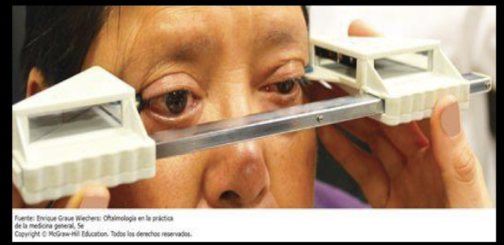 Cómo se diagnostíca exoftalmos y cuál es el valor normal de la prueba