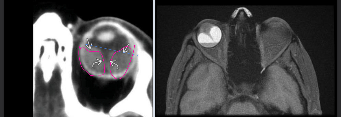 RM-> evalua neoplasias o fondoscopia no concluyente