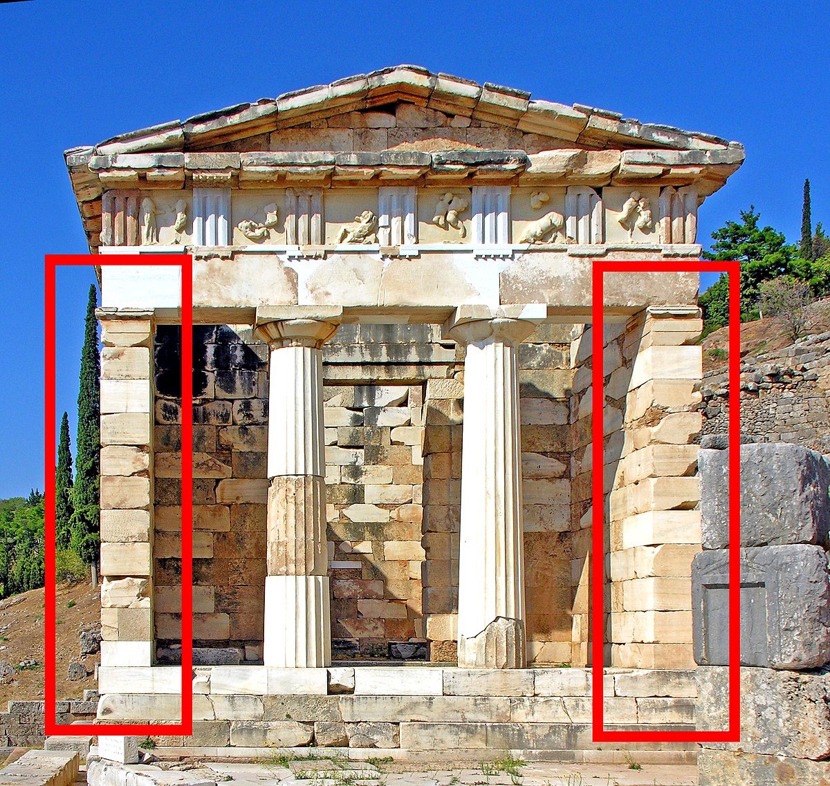 Having four columns on one or each front.