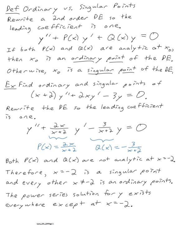 What distinguishes an ordinary point from a singular point in the context of differential equations?