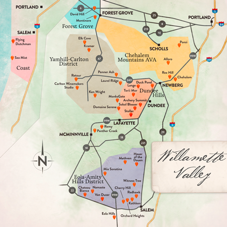 AVA of Archery Summit, Domaine Drouhin, Domaine Serene, Sokol Blosser