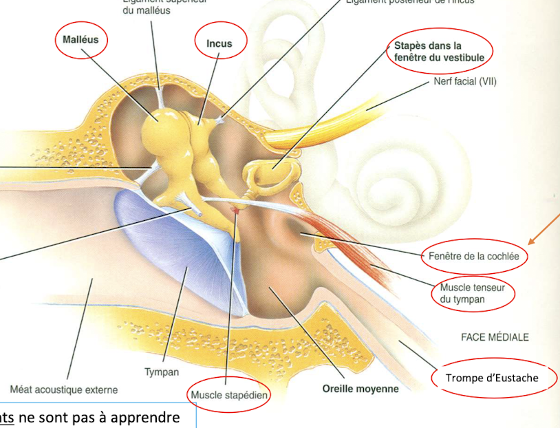 Nomme les 4 structures de l’oreille moyenne :