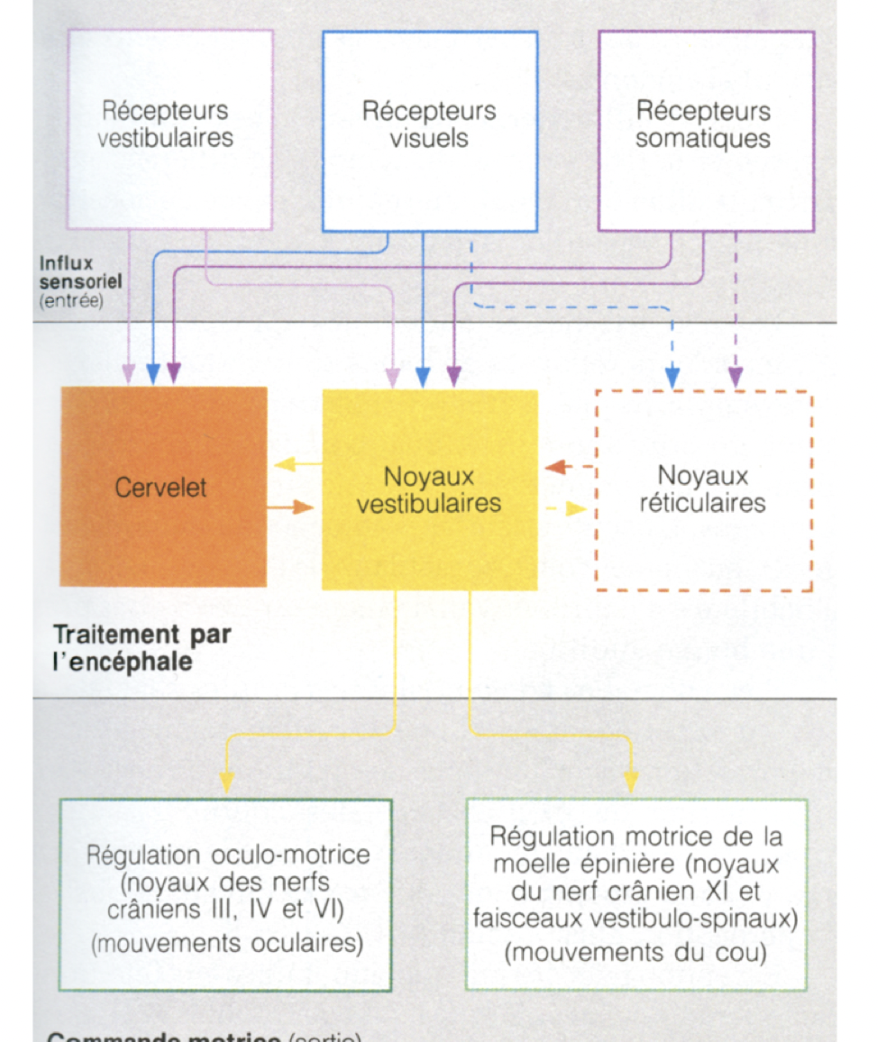 Les messages provenant des récepteurs de l’équilibre atteignent directement les centres réflexes du tronc cérébral
