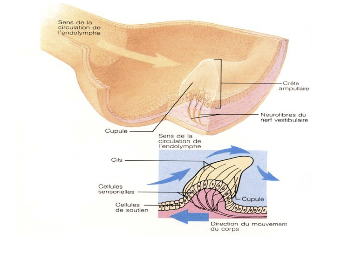 Crêtes ampullaires (canaux semi-circulaires)