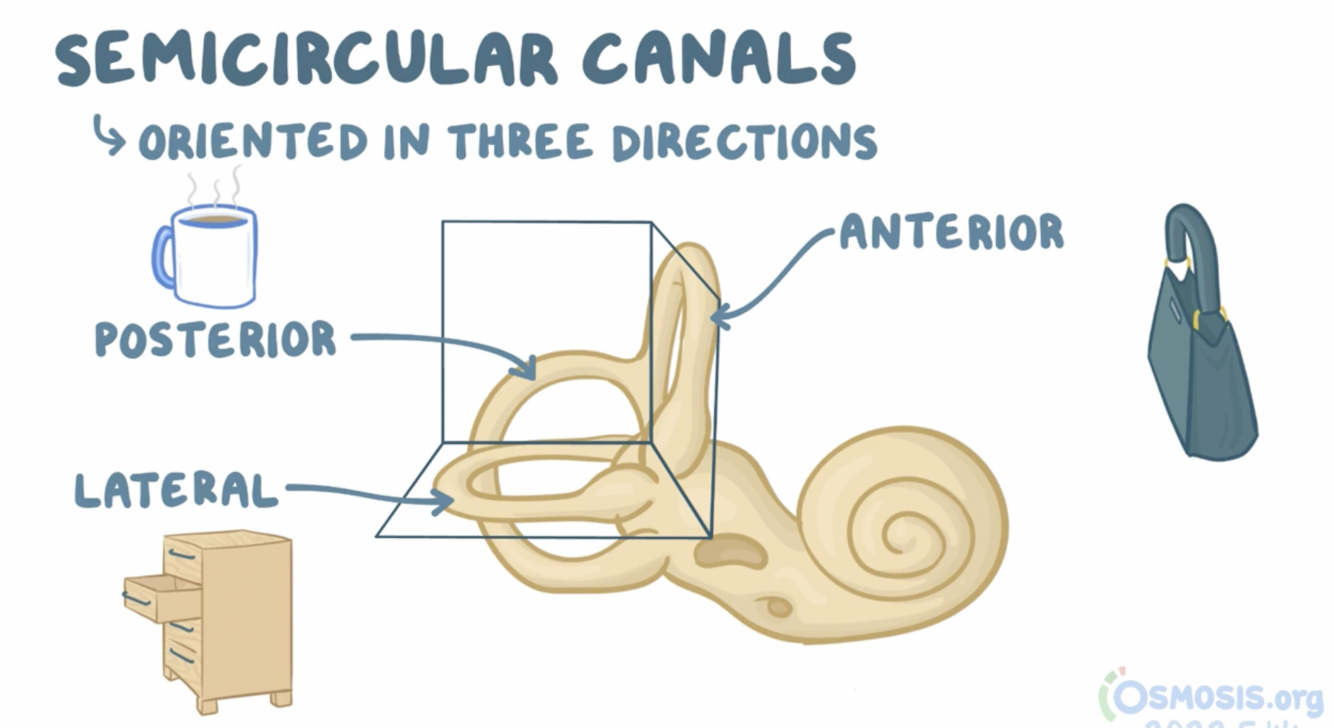 Direction des 3 canaux semi-circulaires