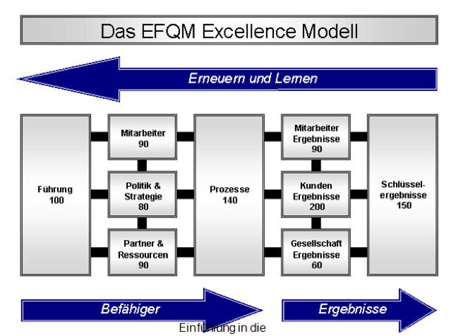 Das Modell unterscheidet 5 Befähiger-Kriterien und 4 Ergebnis- Kriterien beinhalten insgesamt 32 Einzelkriterien