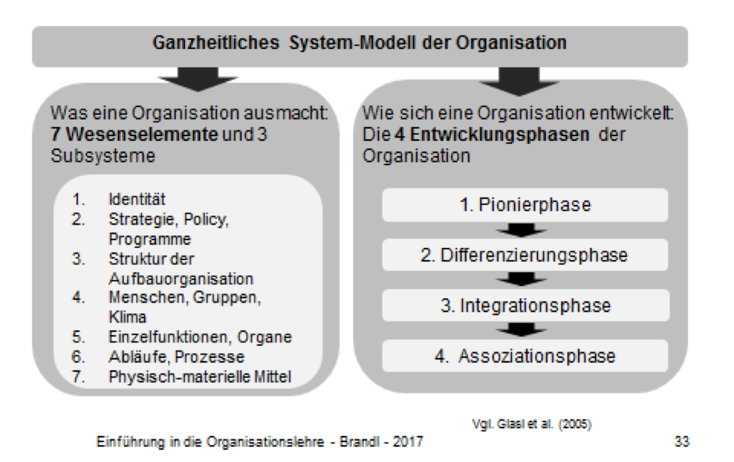 Es beschreibt 7 Wesenselemente und 3 Subsysteme die ein Unternehmen ausmachen: