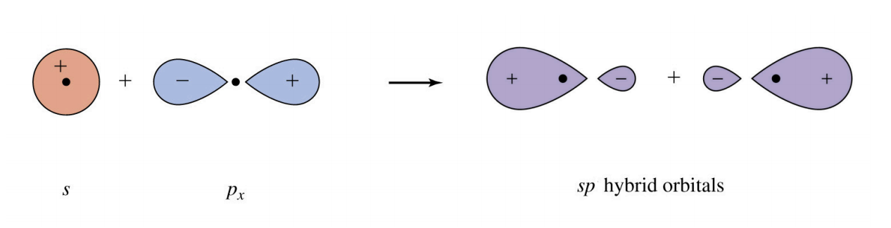 Describe sp hybridisation