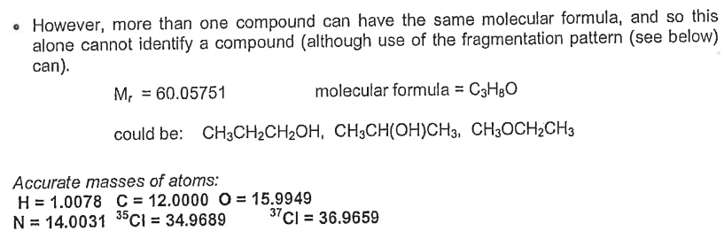 the molecular formula. Each molecular formula has a different Mr if measured to enough
