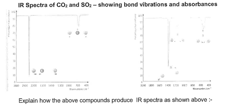 Specific frequencies of infrared radiation are absorbed by the molecules which cause particular bonds to vibrate.